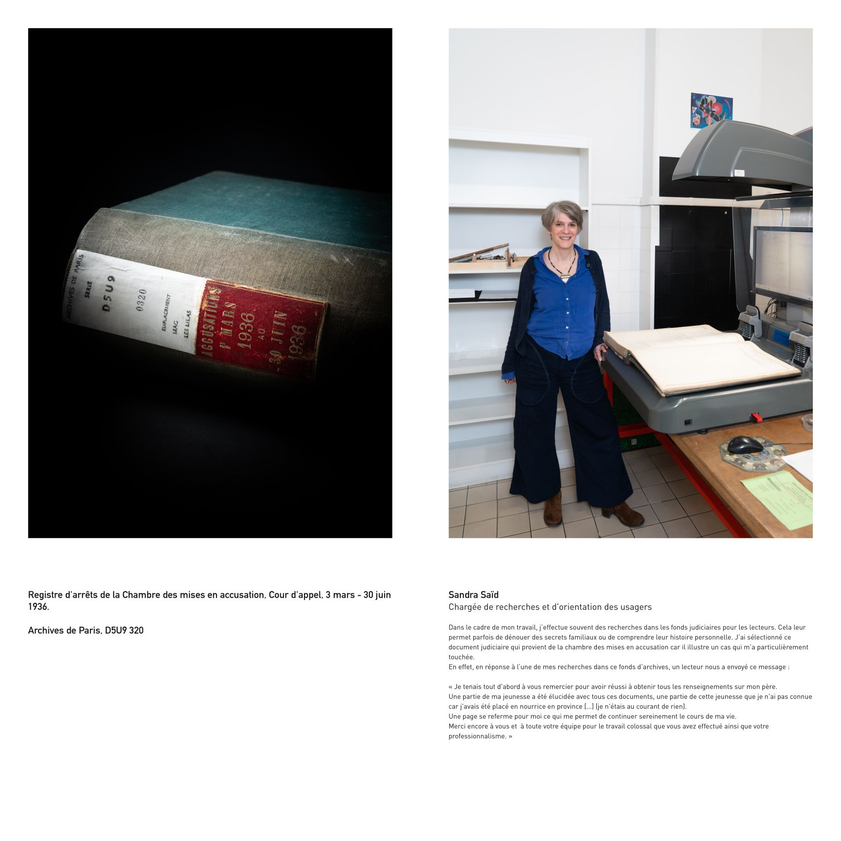 Au-delà des coulisses qu’il dévoile, ce projet artistique met particulièrement en valeur les archives en tant qu'objets sensibles et matières à émotions.